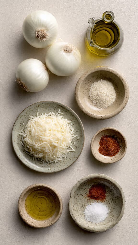 Parmesan Cheese: This hard, aged cheese crisps beautifully in the oven, creating a savory shell that contrasts perfectly with the soft onion center.