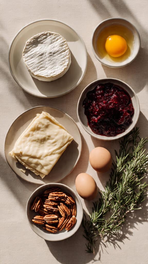 When you cut into it, the pastry flakes delicately while the brie melts softly inside. The cranberry sauce offers sweet tart brightness, and pecans add a gentle crunch. Rosemary brings a subtle aroma that ties everything together beautifully.