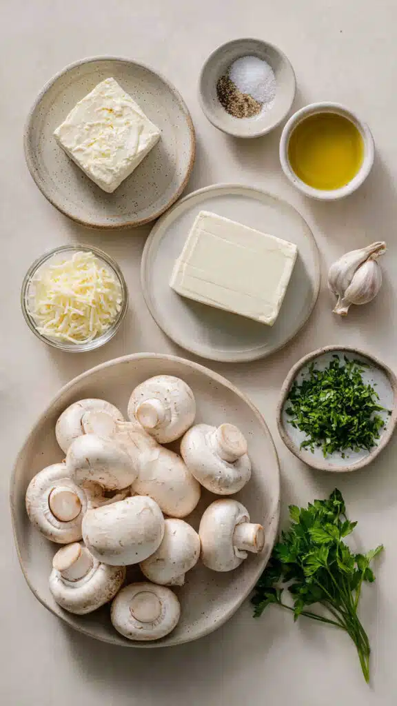 White Button Mushrooms: These small caps become tender and juicy when cooked, while holding their shape perfectly. Their mild, earthy flavor pairs beautifully with creamy and savory fillings.