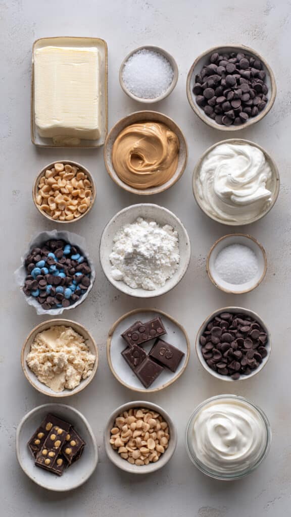 This dip is the perfect balance of rich and light. The fluffy peanut butter base is sweet, creamy, and nutty, while the ganache layer adds silky, melt-in-your-mouth depth. Mini chocolate chips add texture, and a sprinkle of salt or peanuts brings the sweet-salty contrast that makes every bite more addictive than the last.