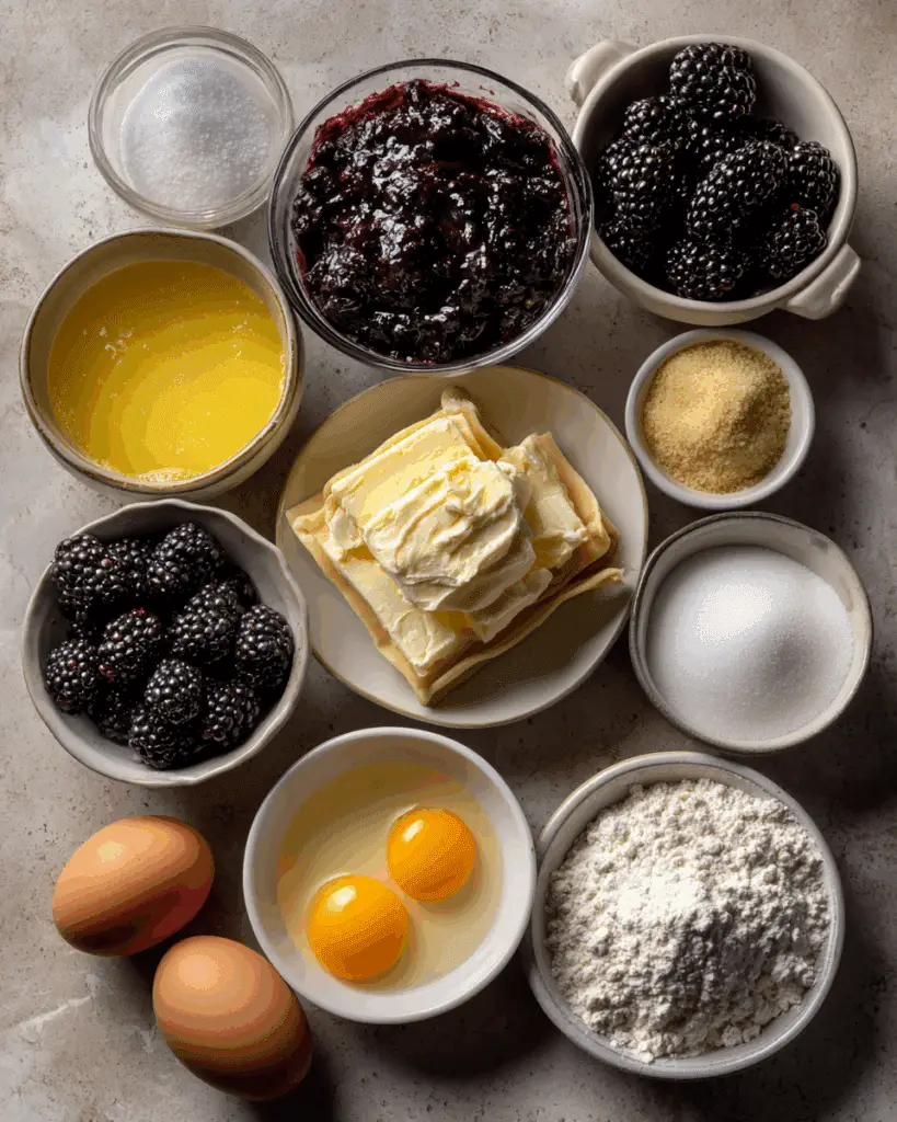 - Prepare the blackberry curd: In a saucepan, combine blackberries, sugar, egg, egg yolks, and lemon juice over medium heat. Cook, stirring constantly, until thickened, about 5–7 minutes. Remove from heat and stir in butter. Strain to remove seeds if desired and let cool.