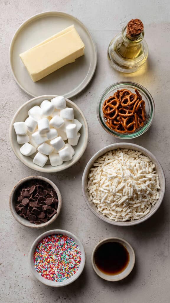 The browned butter gives a warm backbone, while marshmallows keep everything soft and stretchy. Pretzels add crunch and salt, chocolate melts into rich pockets, and the cereal keeps the structure light. Each bite feels layered and satisfying.