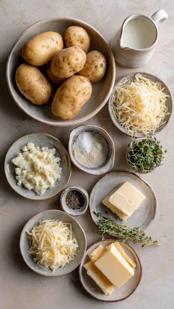 Ingredients in Cheesy Mini Potato Gratin Stacks (Muffin Tin)