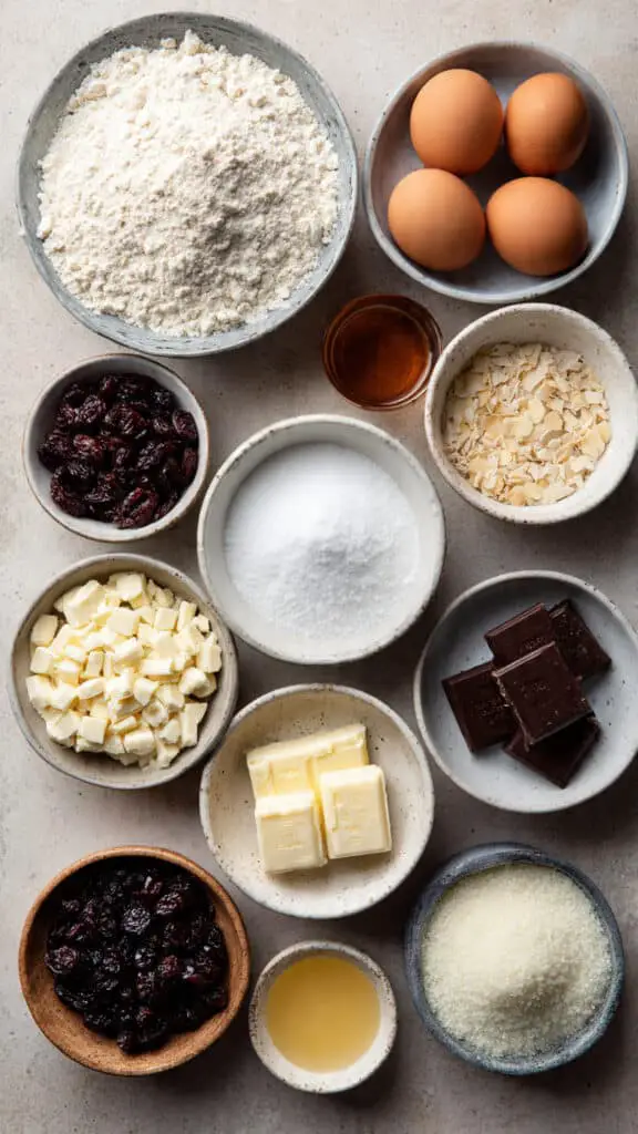 - Dried Cherries: 1 cup, slightly chopped for chewy bursts of flavor.