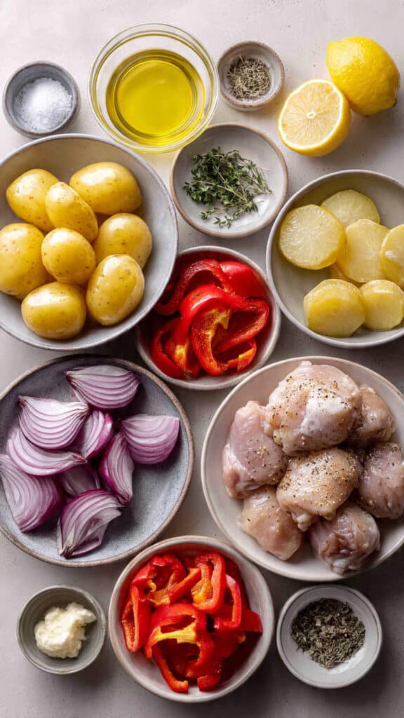 This recipe came to life during a weekend clean-out-the-fridge moment. A few baby potatoes, some bell peppers, and a pack of chicken thighs turned into something way more than expected. Tossed in a simple lemon-garlic herb marinade and roasted until golden, it quickly became a go-to for busy weeknights and lazy Sundays alike. It’s hearty, easy, and totally satisfying.