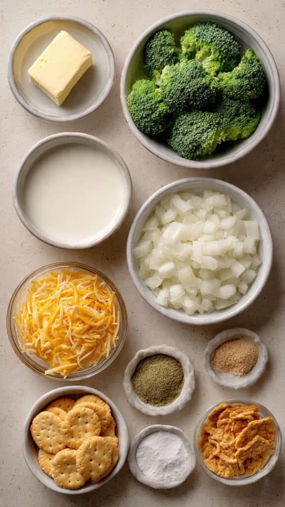 This dish is all about contrasts: tender, juicy chicken, crisp-tender broccoli, creamy tangy cheese sauce, and a crunchy, buttery cracker topping. Each bite combines softness, creaminess, and crispness for a balanced, indulgent experience.