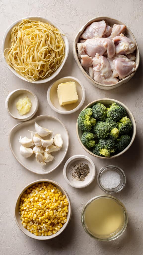 There’s a delicious harmony between the tender chicken, silky noodles, and buttery sauce. Here’s everything you’ll need: