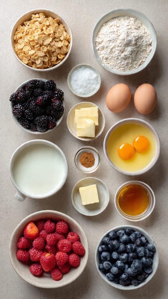 - Fresh Berries: 3 cups – Blackberries, raspberries, blueberries, or strawberries for freshness.