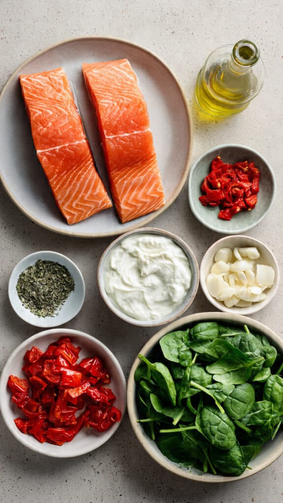 Ingredients in Creamy Spinach and Salmon Skillet