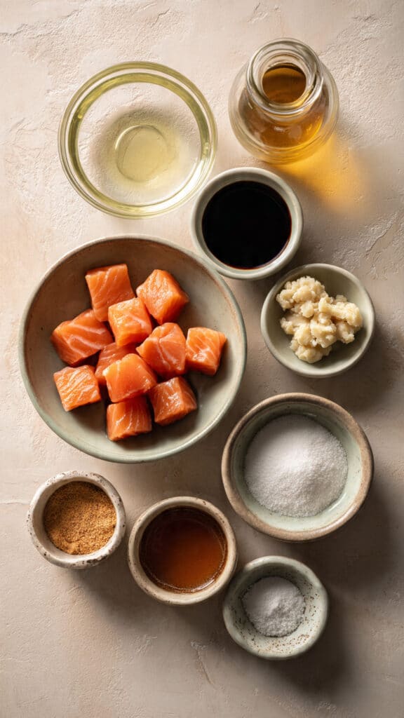 - Assemble the Dish: Toss the salmon cubes in the marinade until evenly coated.