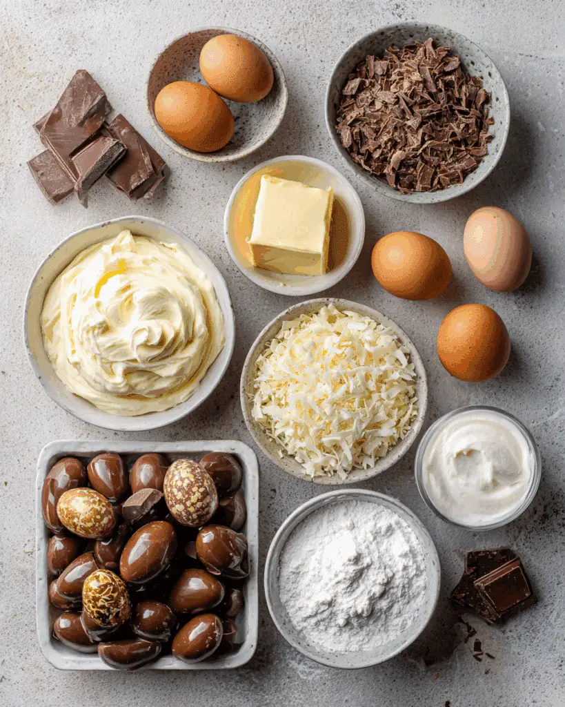 Chocolate Mini Eggs: Both inside the filling and on top for fun, festive color and crunchy chocolate bites.
