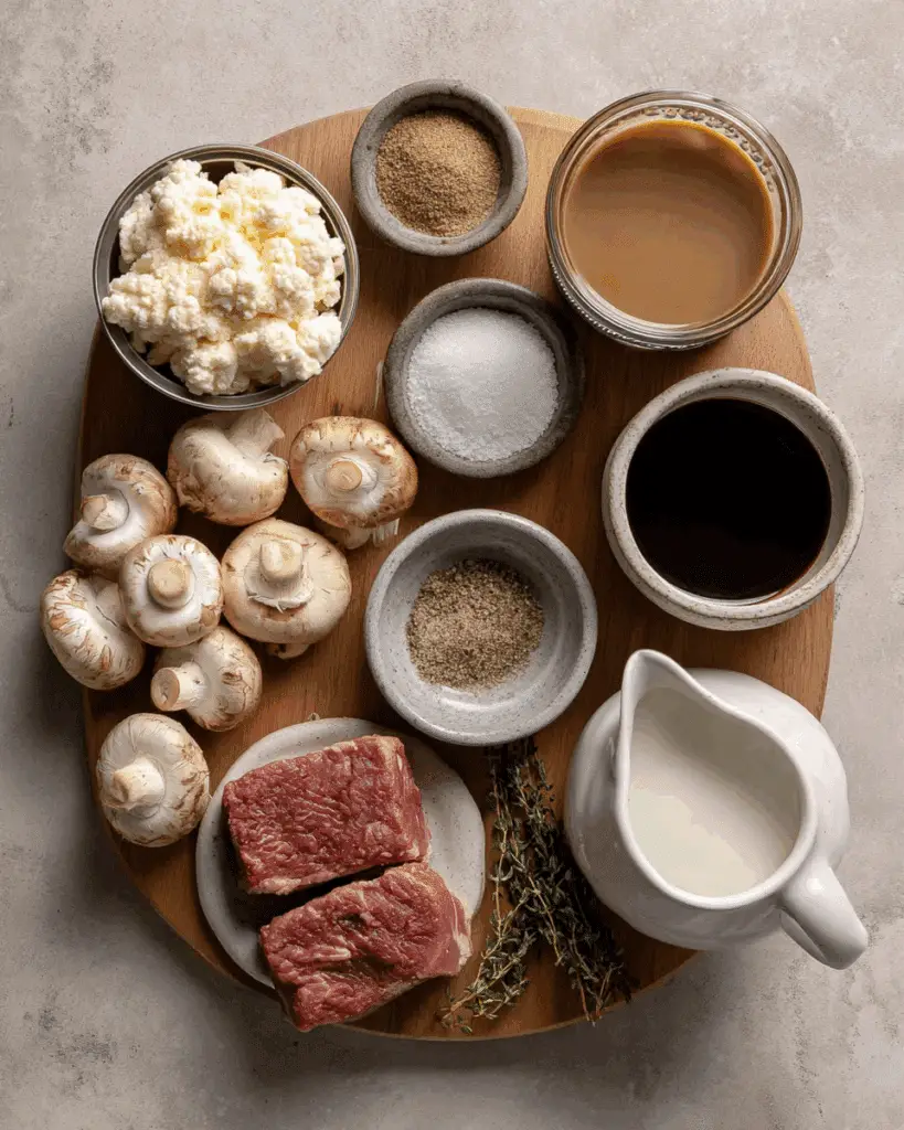 Cream of Mushroom Soup: Creates a creamy, savory base thatโs full of mushroom flavor.