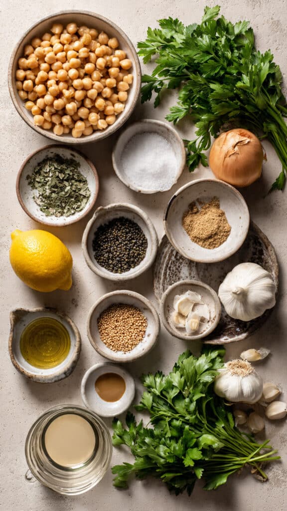 Each ingredient plays a key role in creating the perfect falafel flavor and texture.
