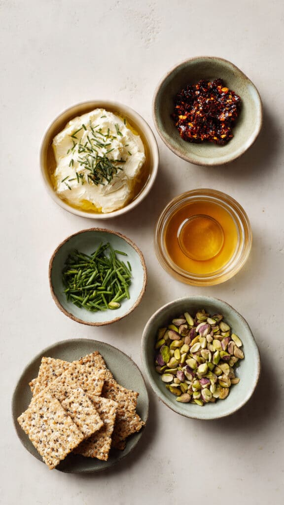 This dip succeeds because of balance. The cheese gives velvety creaminess. Chili crisp adds crunch and spice. Honey adds smooth sweetness, and pistachios bring nutty texture. Chives provide a bright, fresh finishing note. Every bite is a blend of soft, crunchy, sweet, and savory.
