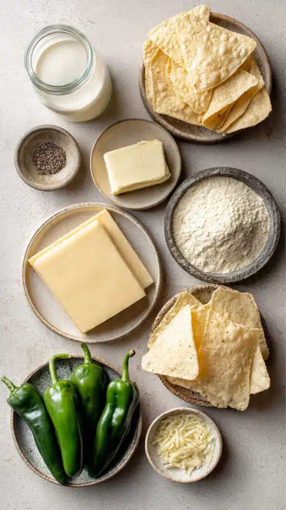 Green Chiles: Roasted poblano peppers for a deeper flavor.