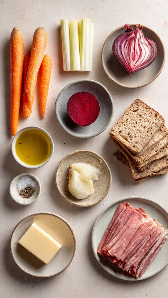 Ingredients in Grilled Pastrami Sandwich with Root Vegetable Slaw