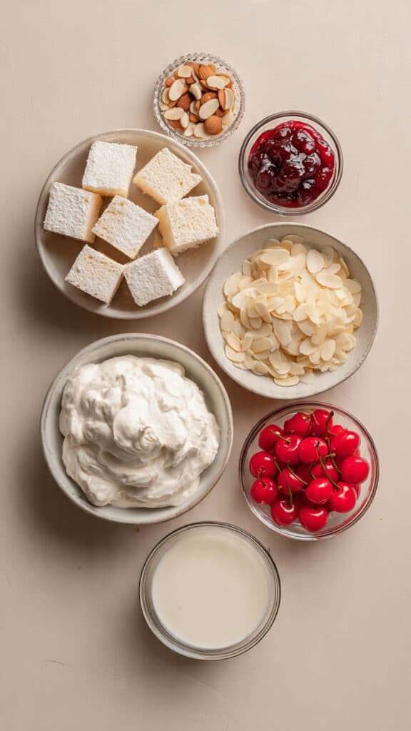 - Angel Food Cake: 1 prepared cake, cut into cubes – Light and airy, the perfect base for soaking up creamy layers.