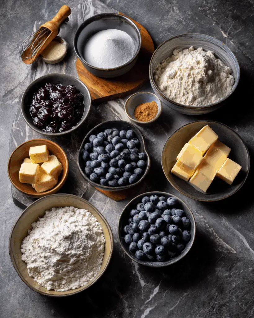 Fresh Blueberries: The star of the show. Juicy, plump, and bursting with natural sweetness — they create that irresistible purple filling.