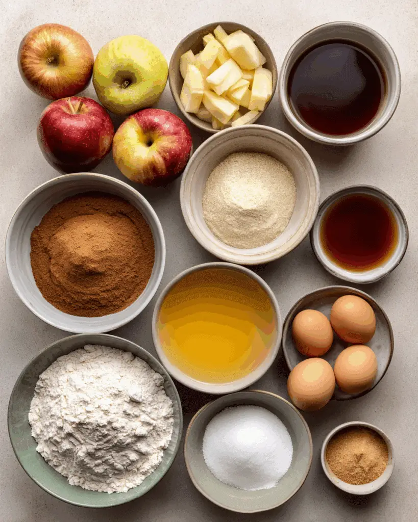 Orange Juice and Vanilla Extract: Add brightness and depth to the cake, complementing the apples perfectly.