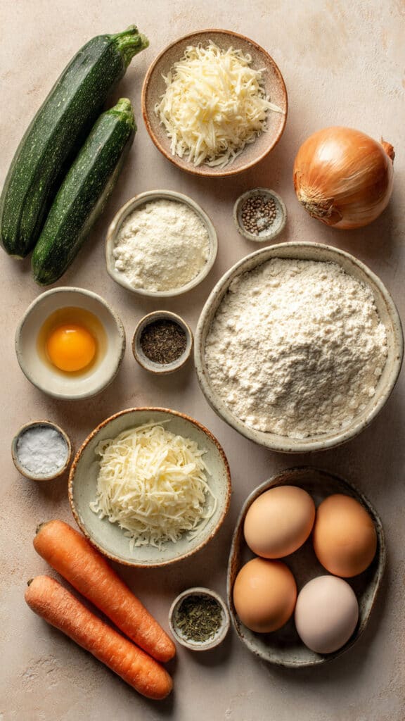- Zucchini: 1 medium, grated, adds moisture and freshness
