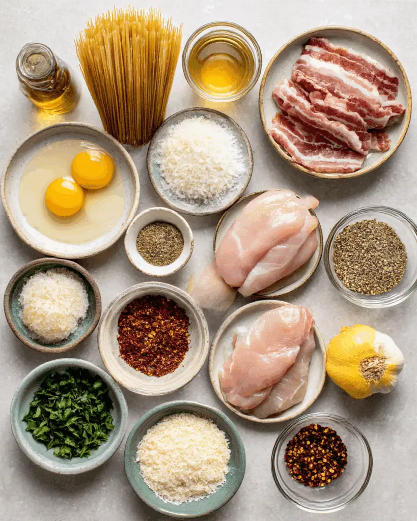 Ingredients in Lemony Garlic Chicken Carbonara Pasta