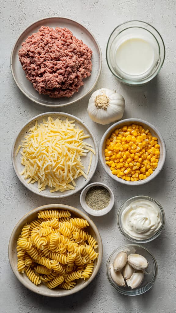 Ingredients You Will Need for Loaded Cheddar Ranch Beef And Sweet Corn Rotini Bake