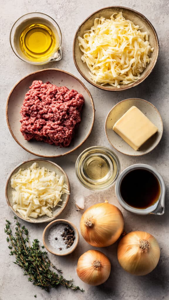 - Yellow Onions: 4 large, thinly sliced, create the sweet caramelized base.
