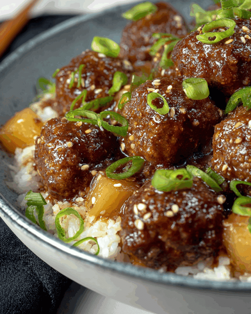 Savory Mongolian beef meatballs glazed in a sweet and tangy pineapple sauce, combining tender beef with aromatic ginger, garlic, and scallions. Perfect for a flavorful weeknight dinner or party appetizer.