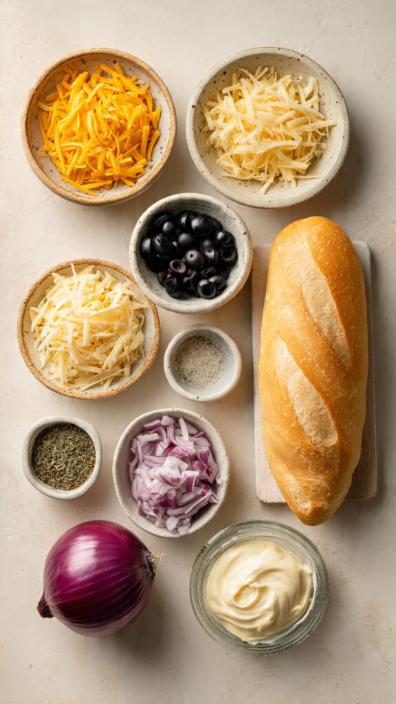 While crostini originated in Italy as small slices of toasted or grilled bread topped with various spreads, this version has a distinctly American twist. It leans into the richness of cheddar, the creamy tang of mayo, and the salty punch of olives, creating a fusion of comfort food and elegant starter. It’s a recipe that feels both familiar and totally unique.