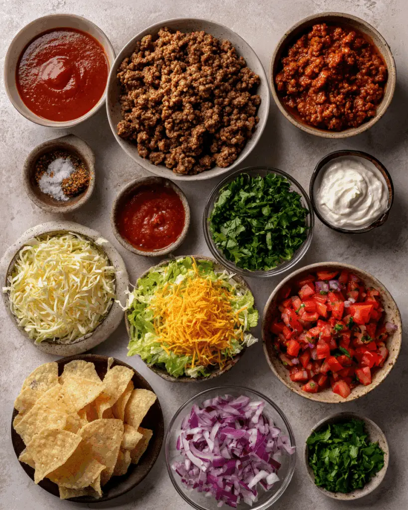 Ground Beef: The star of the show. Juicy, well-seasoned, and full of savory goodness, it forms the hearty base of the taco. You can also swap in ground turkey or chicken for a lighter option.
