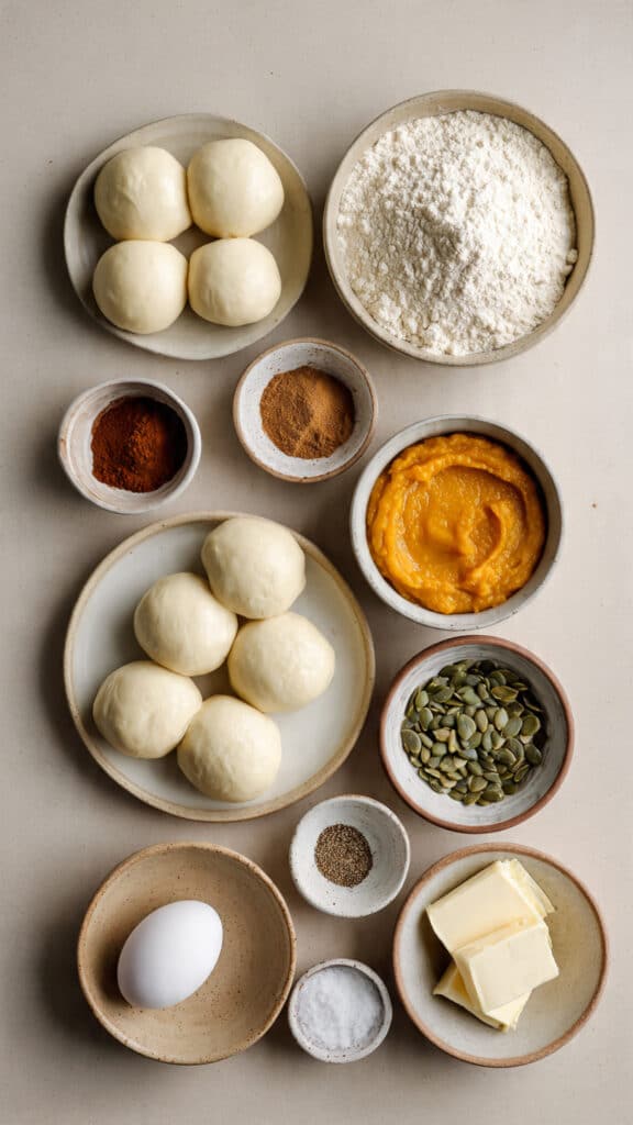 The first thing you notice is the texture. The brioche is tender and pillowy, slightly golden on the outside and soft on the inside. Then comes the creamy cheesecake center, smooth and lightly tangy, balanced by the warm pumpkin spice swirl. The crumble topping adds little buttery clusters that crisp up beautifully in the oven. Add pumpkin seeds for a gentle crunch, and you have a bun that hits every texture note. Let me tell you, it’s worth every bite.