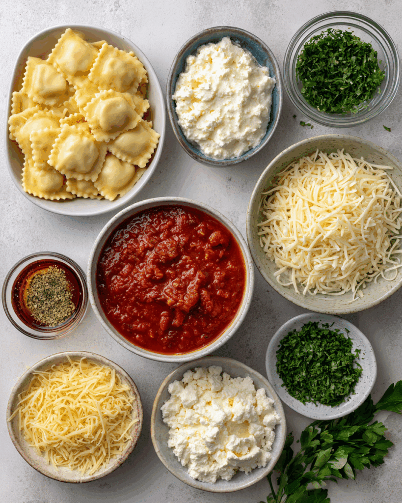 This casserole is inspired by classic Italian baked pasta dishes but with a shortcut twist. Instead of making homemade ravioli, we use refrigerated cheese ravioli, making it a fast and convenient dinner without sacrificing flavor.