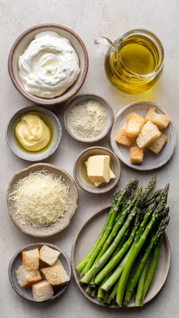Warm roasted asparagus contrasts beautifully with the cool creamy dressing. The Parmesan adds saltiness, the lemon adds brightness, and the croutons bring that satisfying crunch that ties everything together.