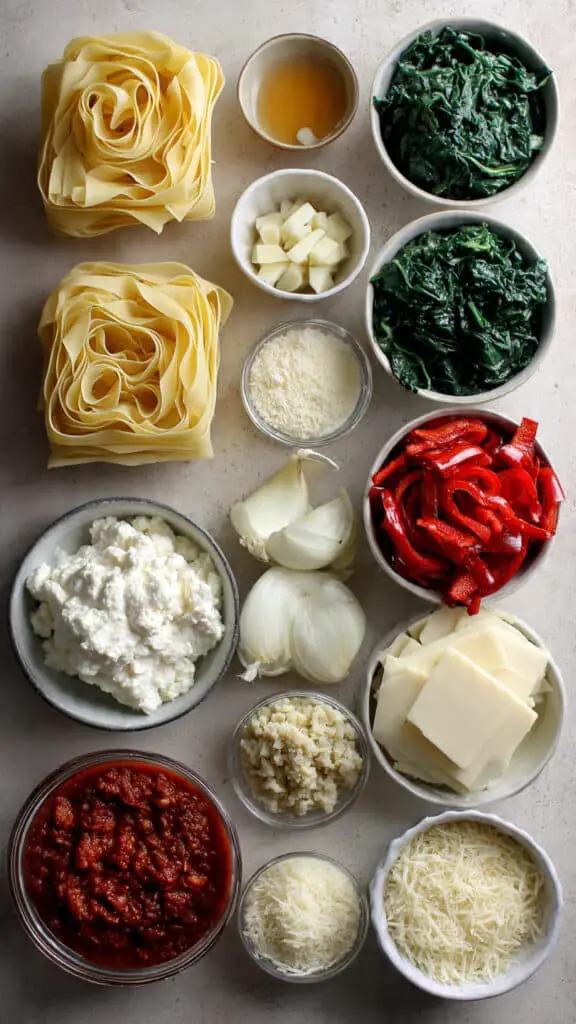 Ingredients in Roasted Red Pepper and Spinach Lasagna