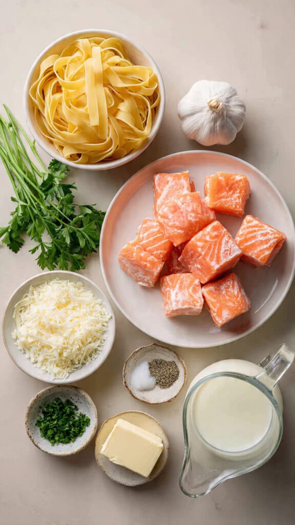 This dish is all about balance — the creamy sauce hugs the pasta, the salmon brings a buttery richness, and the garlic and parmesan tie it all together. The result is smooth, silky, and luxurious with just enough freshness from the parsley to keep it light.