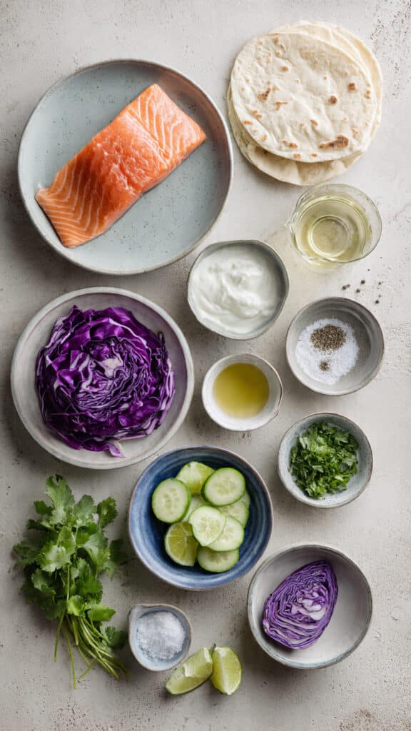 Fresh and vibrant salmon flatbread topped with crisp purple cabbage slaw, cool cucumber, and a creamy cilantro yogurt sauce. A balanced, flavor packed meal that is light yet satisfying and perfect for lunch or dinner.