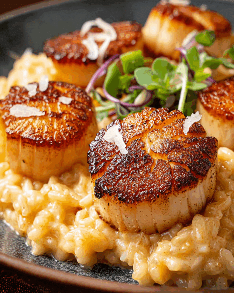 - Serve immediately—risotto and scallops are best enjoyed hot.