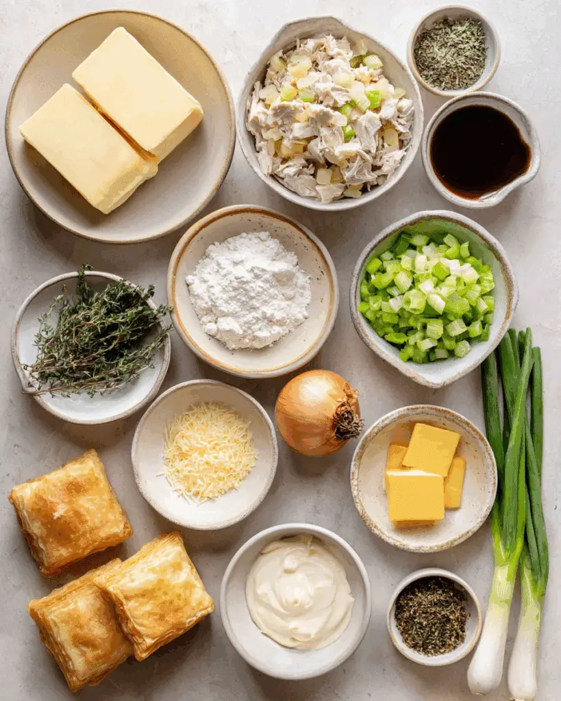 Make sure your chicken is shredded evenly so every bite has a balance of meat and veggies. Don’t overfill the pastry—leave a little edge so it bakes up beautifully. Brush the pastry with beaten egg for that golden, shiny finish