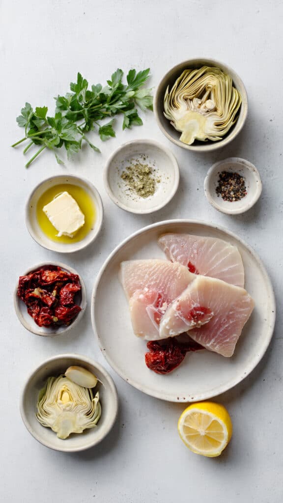 This dish was born from one of those “what do I have in the fridge” moments. I had swordfish steaks thawed and a half-used jar of marinated artichokes begging to be used. A handful of sun-dried tomatoes, a lemon, and a bit of butter later, dinner became something I wanted to make again and again. It’s light yet filling, flavorful without being fussy, and feels like a mini vacation on a plate.