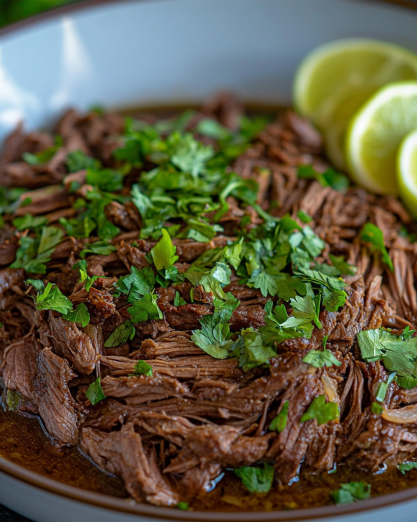 Slow Cook: Cover and cook on low for 6-8 hours, or until the beef is tender and shreds easily with a fork. The slow cooking process will allow the flavors to meld together beautifully.