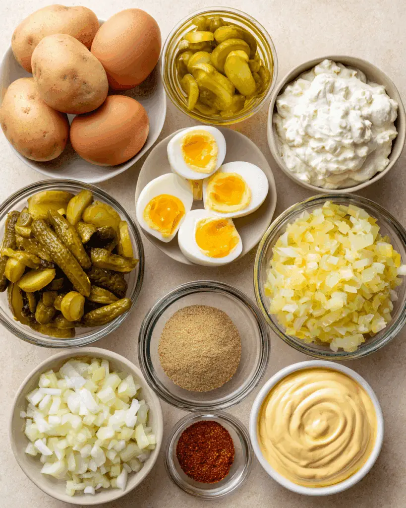 Southern Potato Salad is a classic, creamy, and tangy side dish perfect for barbecues, picnics, or family gatherings. Tender boiled potatoes are mixed with hard-boiled eggs, pickles, onion, and a flavorful dressing, then garnished with paprika for a traditional Southern touch.