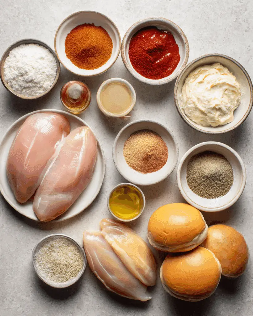 Chicken Breasts: The star of the sandwich. Tender, juicy, and perfectly cooked inside with a crispy exterior.