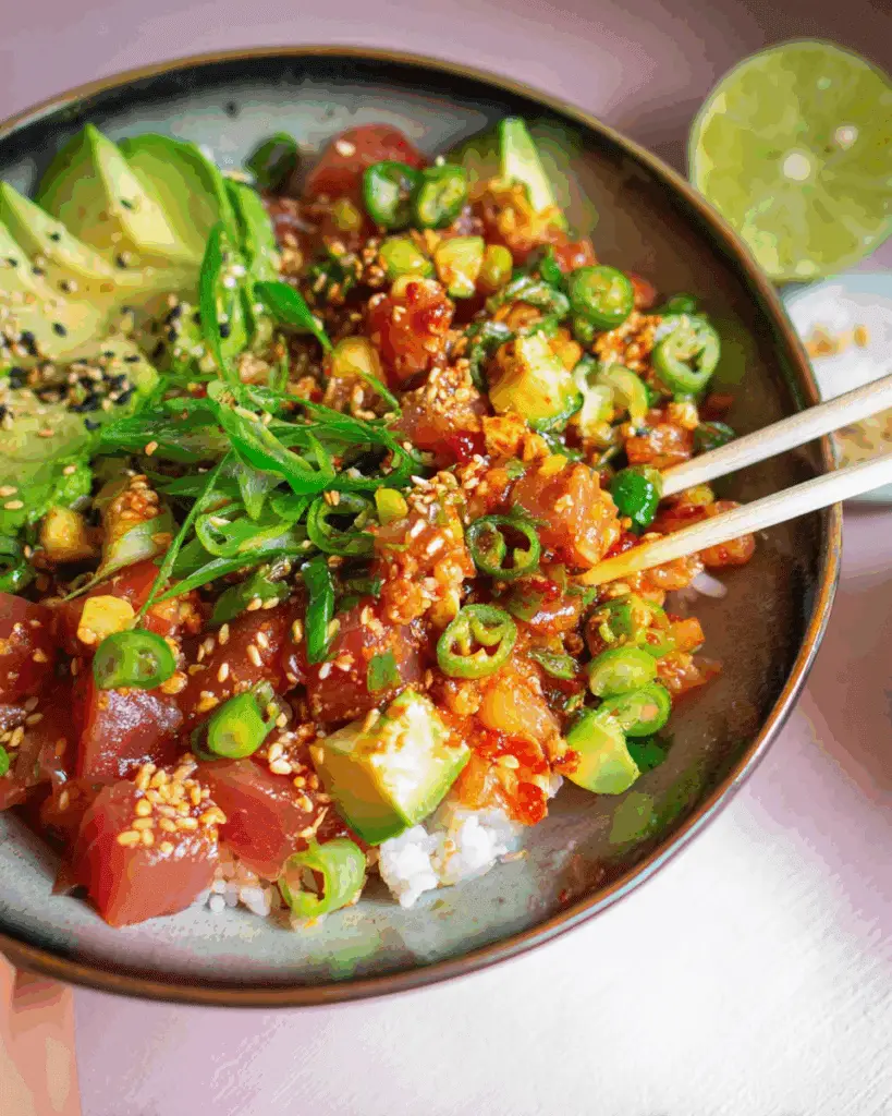 These Spicy Tuna Poke Bowls are everything you want in a meal: fresh, bold, colorful, and deeply satisfying. They’re easy to whip up, endlessly customizable, and guaranteed to impress whether you’re making lunch for yourself or dinner for a group. With every bite, you’ll get that perfect balance of creamy, spicy, sweet, and crunchy—and you’ll wonder why you didn’t start making poke bowls at home sooner.