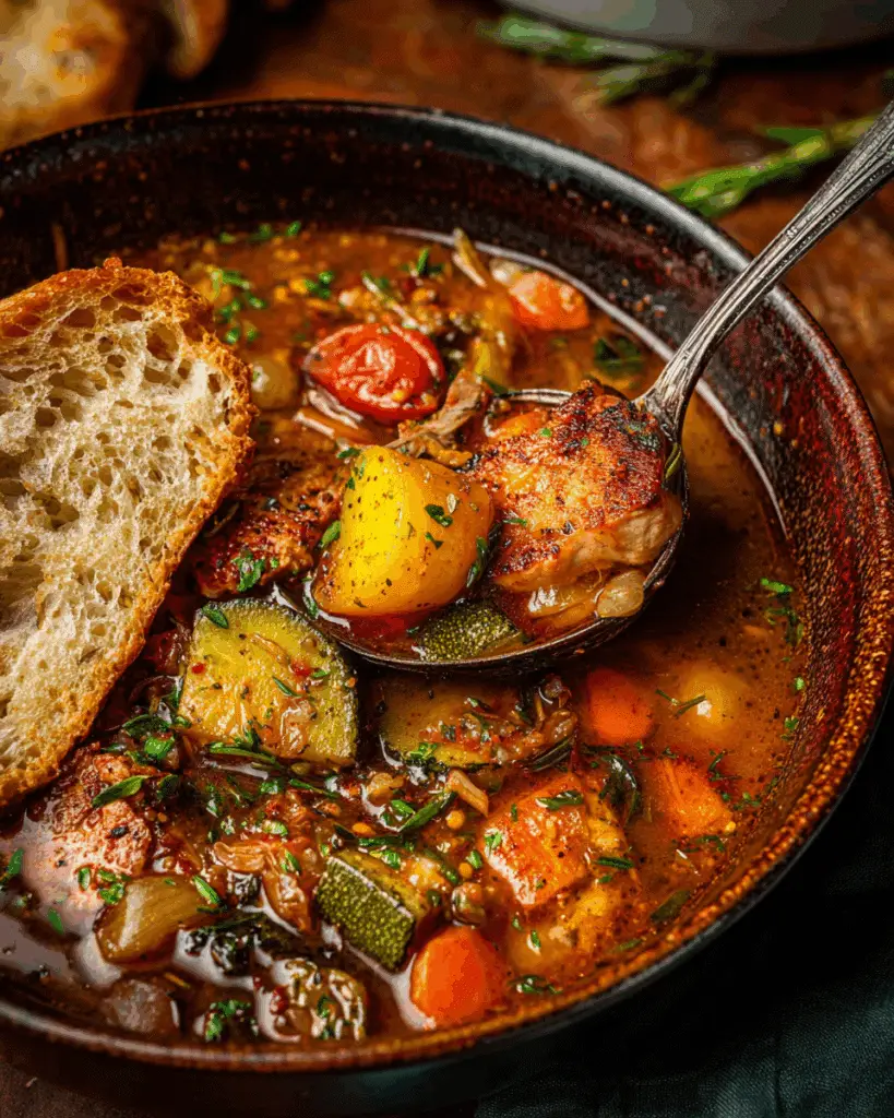 Stone Soup is a hearty, flavorful, and comforting meal perfect for any time of the year. With tender chicken, wholesome grains, and a medley of vegetables, this soup satisfies hunger and warms the soul. The combination of aromatic herbs, garlic, and fresh vegetables makes it a timeless classic, while the flexibility of ingredients lets you adapt it to your taste or pantry availability. Once you make it, Stone Soup will become a favorite in your home—a one-pot meal that’s as nourishing as it is delicious. Each bowl is a reminder that simple ingredients, when combined with love and patience, can create extraordinary flavor and comfort.