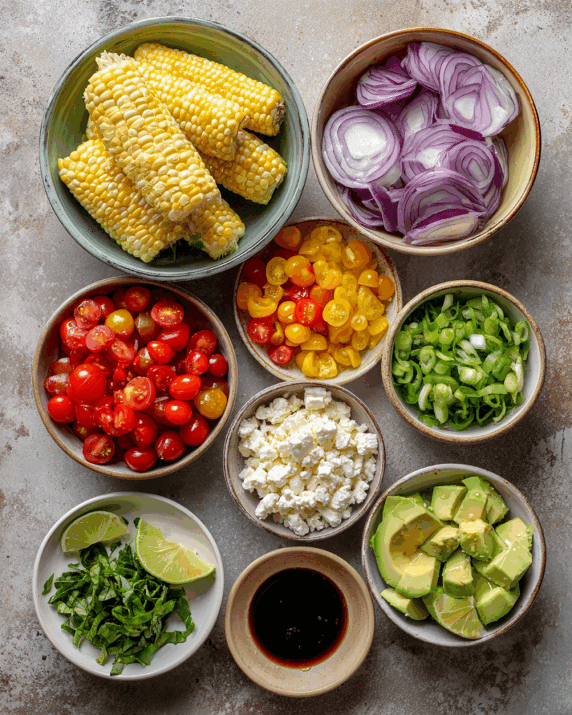 Every ingredient shines. Sweet corn, ripe tomatoes, and creamy avocado bring a rainbow of colors and flavors.