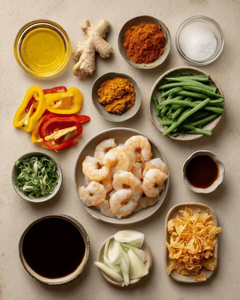Ingredients in Thai Shrimp Curry with Yummy Shallot Crispies