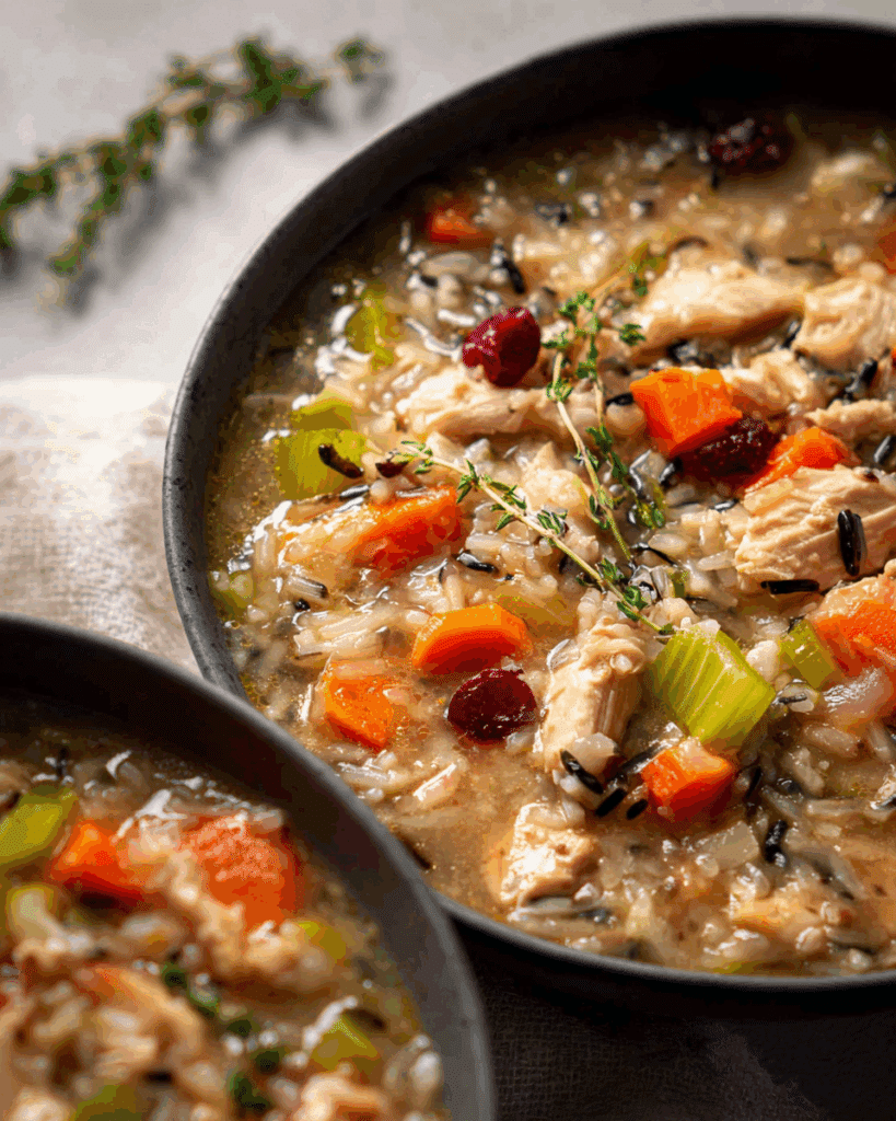 This soup has its roots in good old-fashioned resourcefulness. For generations, families have been simmering leftover turkey bones into rich, golden broth. The wild rice adds that nutty, earthy heartiness that makes the soup feel like a meal on its own. It’s Thanksgiving nostalgia in every spoonful.
