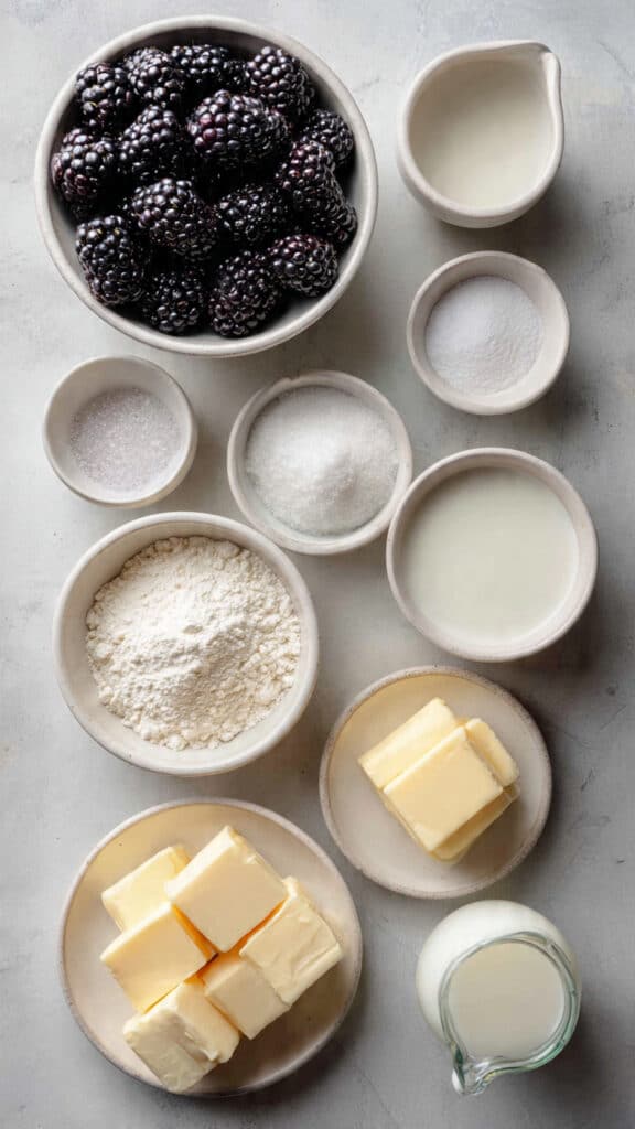 - Blackberries: 4 cups fresh or thawed frozen berries. Sweet-tart and juicy, forming the base of the cobbler.