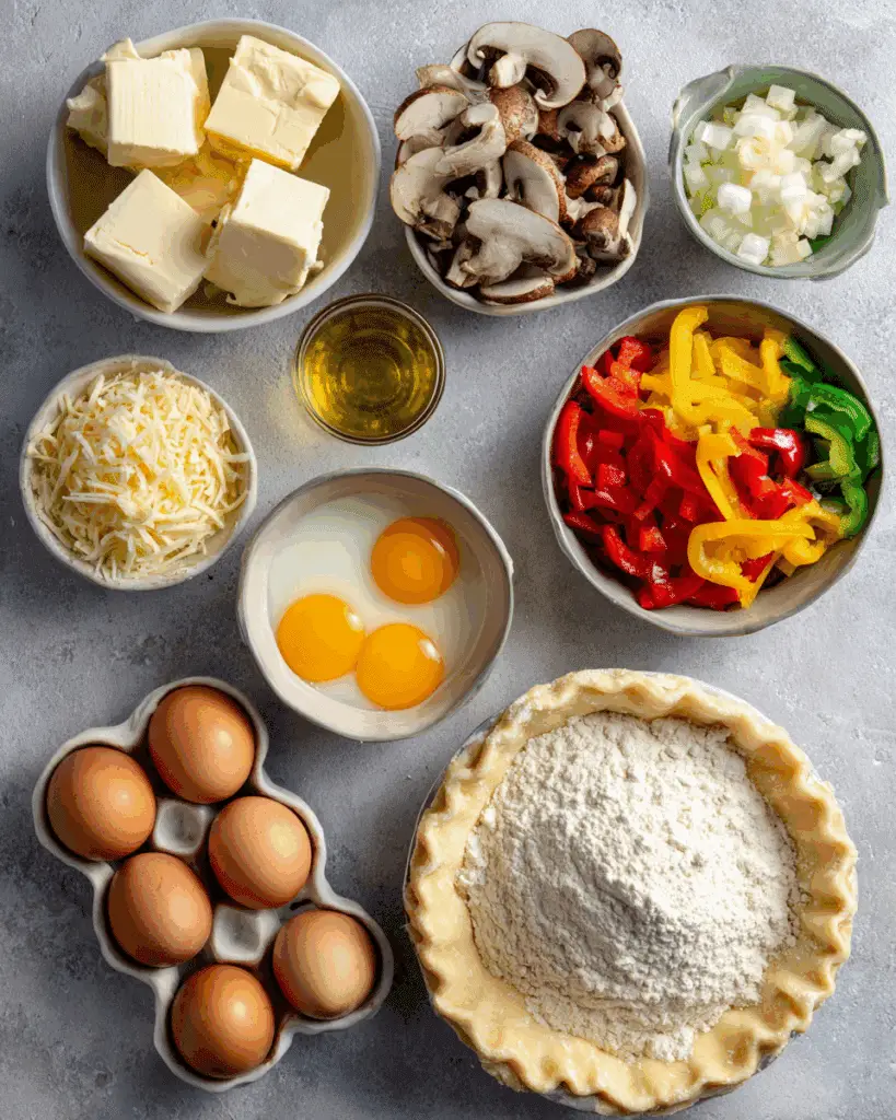 Ingredients in Vegetable Quiche with Homemade Pie Crust