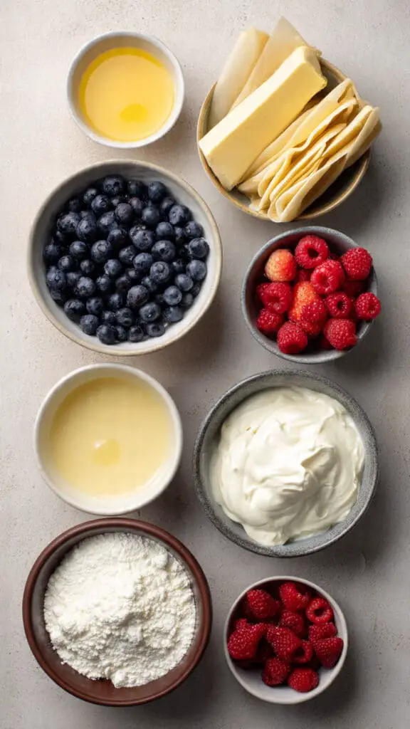 This recipe draws inspiration from classic no-bake cheesecakes and layered trifles. Wonton or egg roll wrappers are often used for savory dishes, but when baked with a little butter, they turn into crispy golden cups perfect for holding rich fillings. The combination of berries, cheesecake pudding, and white chocolate gives this dish a bright, summery flair while staying indulgent enough for any season.